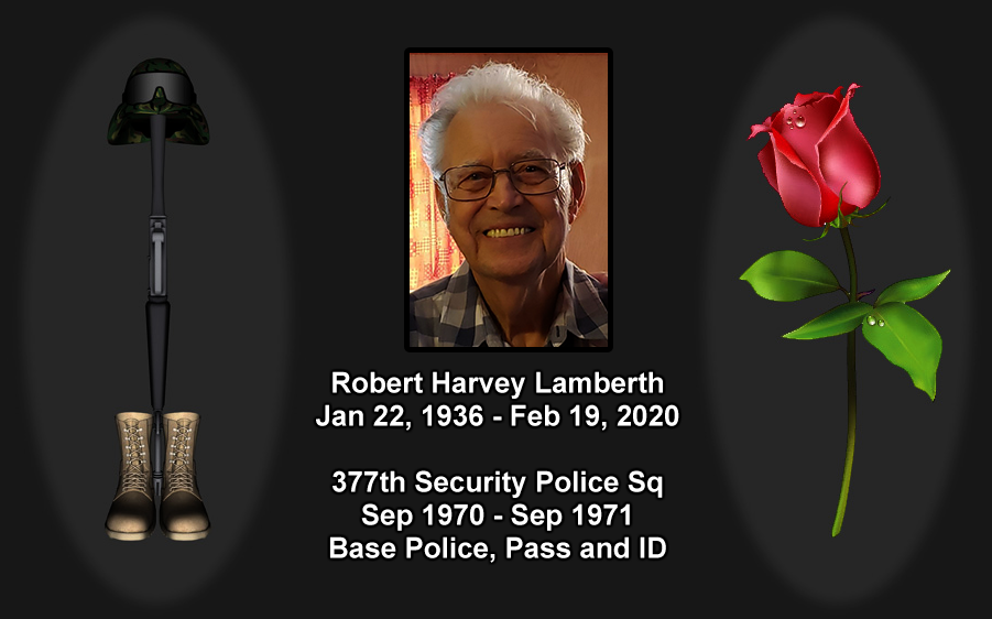 Robert Harvey Lamberth, went on to his happy hunting grounds on 02-19-2020.