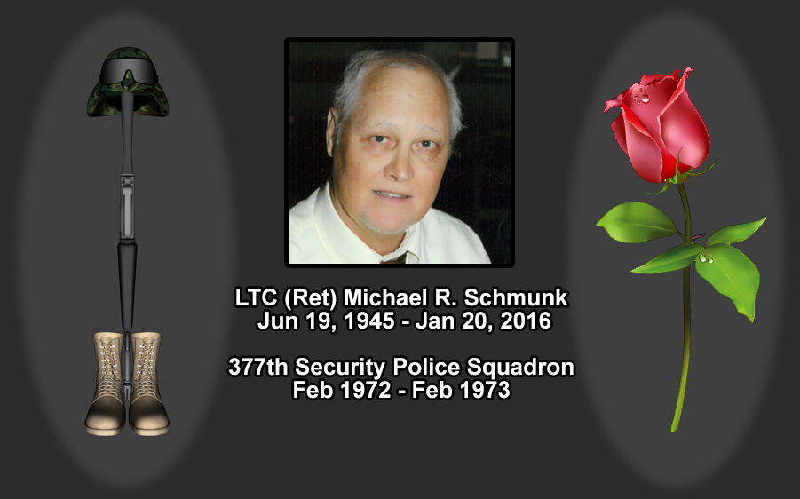 Michael Richard Schmunk, Lt. Col USAF (retired), passed away on January 20, 2016. He was born in Homestead, Florida on June 19, 1945 to Richard and Charlotte Schmunk.